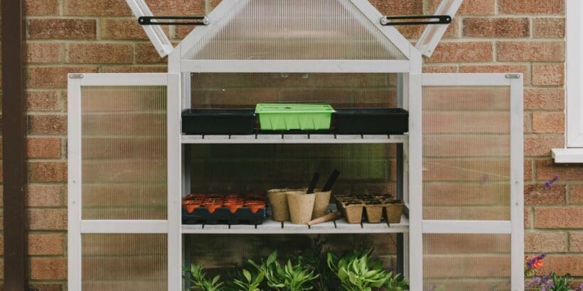 The Grow It Wooden Growhouse from Marshalls Garden is a practical and stylish solution for hardening off seedlings, nurturing young plants or extending your undercover space. Finished in an attractive dove grey, it’s perfect for patios, balconies or gardens where space is at a premium. It is easy to assemble and designed with adjustable shelves. Each tier comfortably fits three standard-size seed trays, and the 5mm (¼in) UV-treated polycarbonate glazing ensures optimum light levels. Adjustable locking stays let you control ventilation with ease, and you can open the roof and doors fully on warmer days.